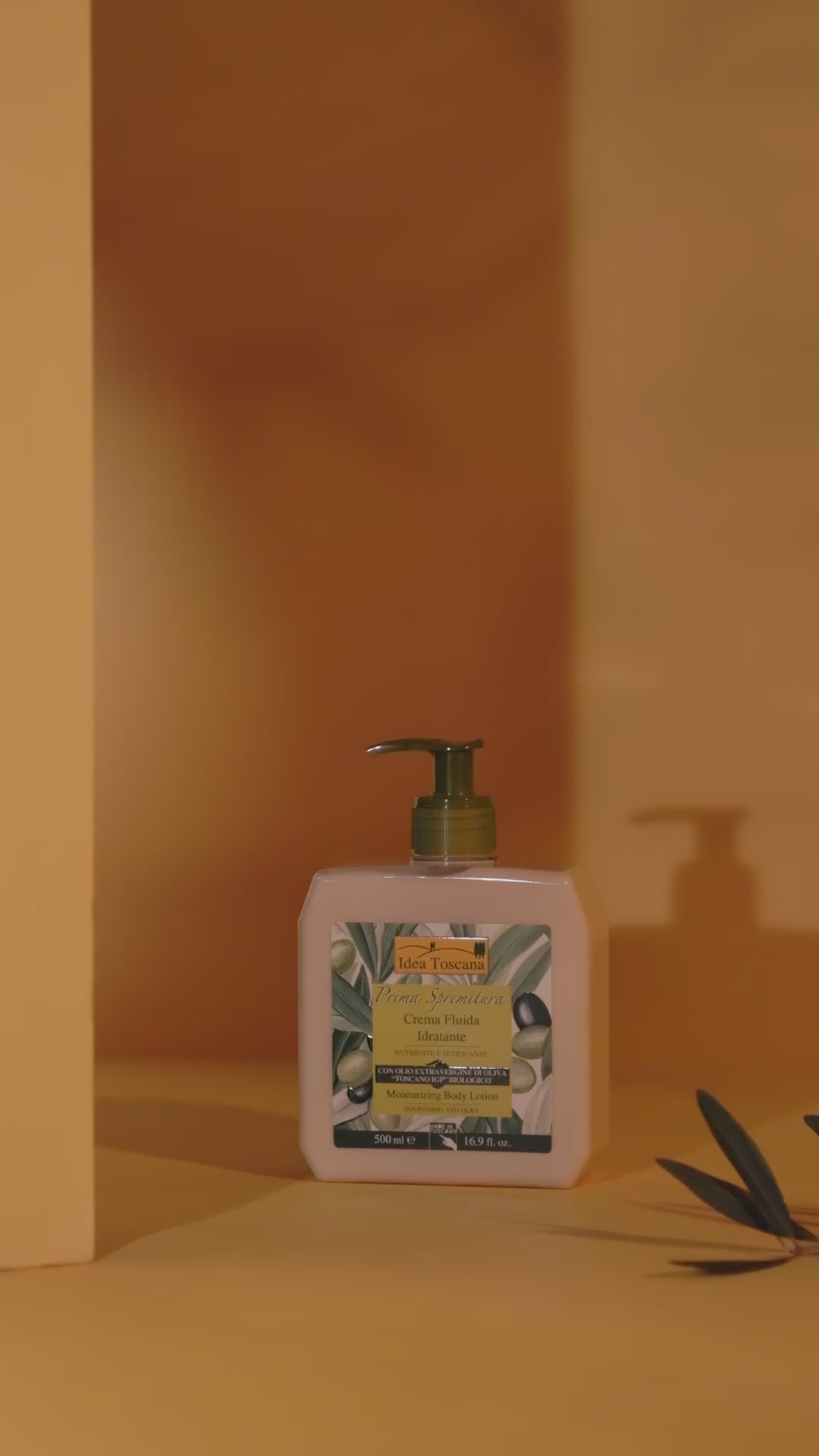 The exclusive formulation, enriched with active plant ingredients such as Organic Tuscan PGI Extra Virgin Olive Oil, Shea Butter and Cocoa Butter, gives the skin nourishment and well-being.