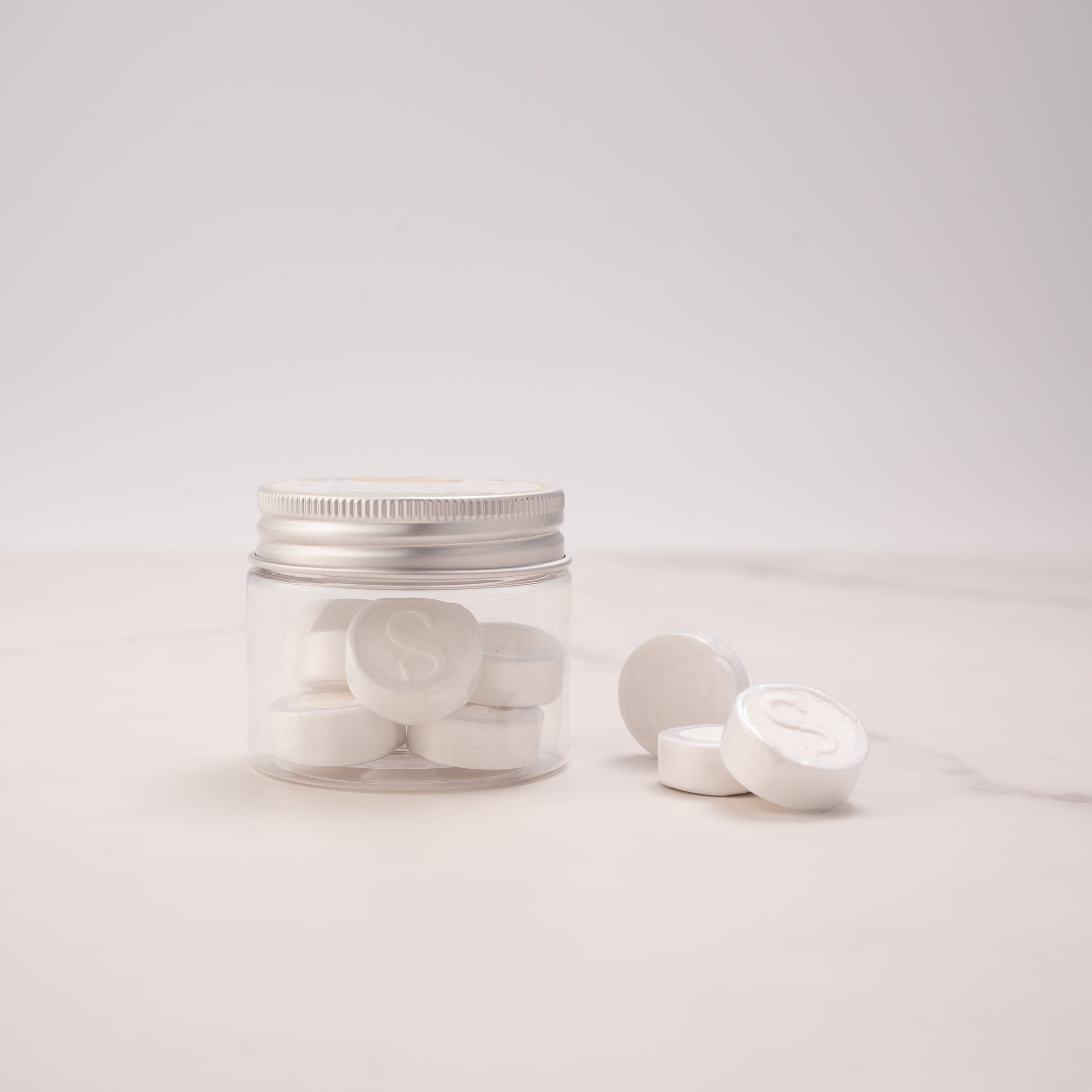 Mini Pet containing 10 Face Masks. Measurements: ø 5, h 4.5 cm