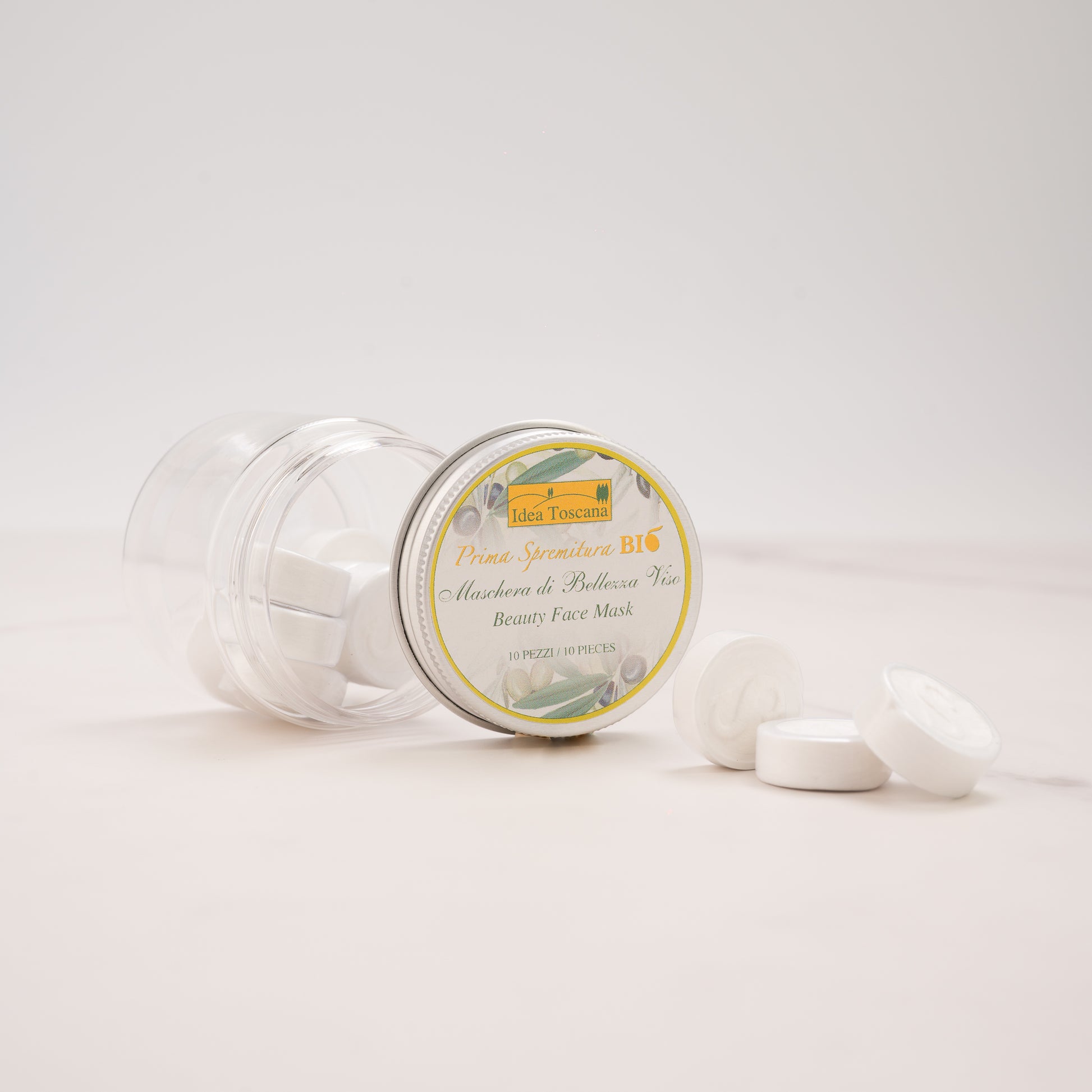 10 Compressed tissue face masks for natural skincare : for purified and hydrated skin. To be combined with Prima Spremitura BIO micellar water.