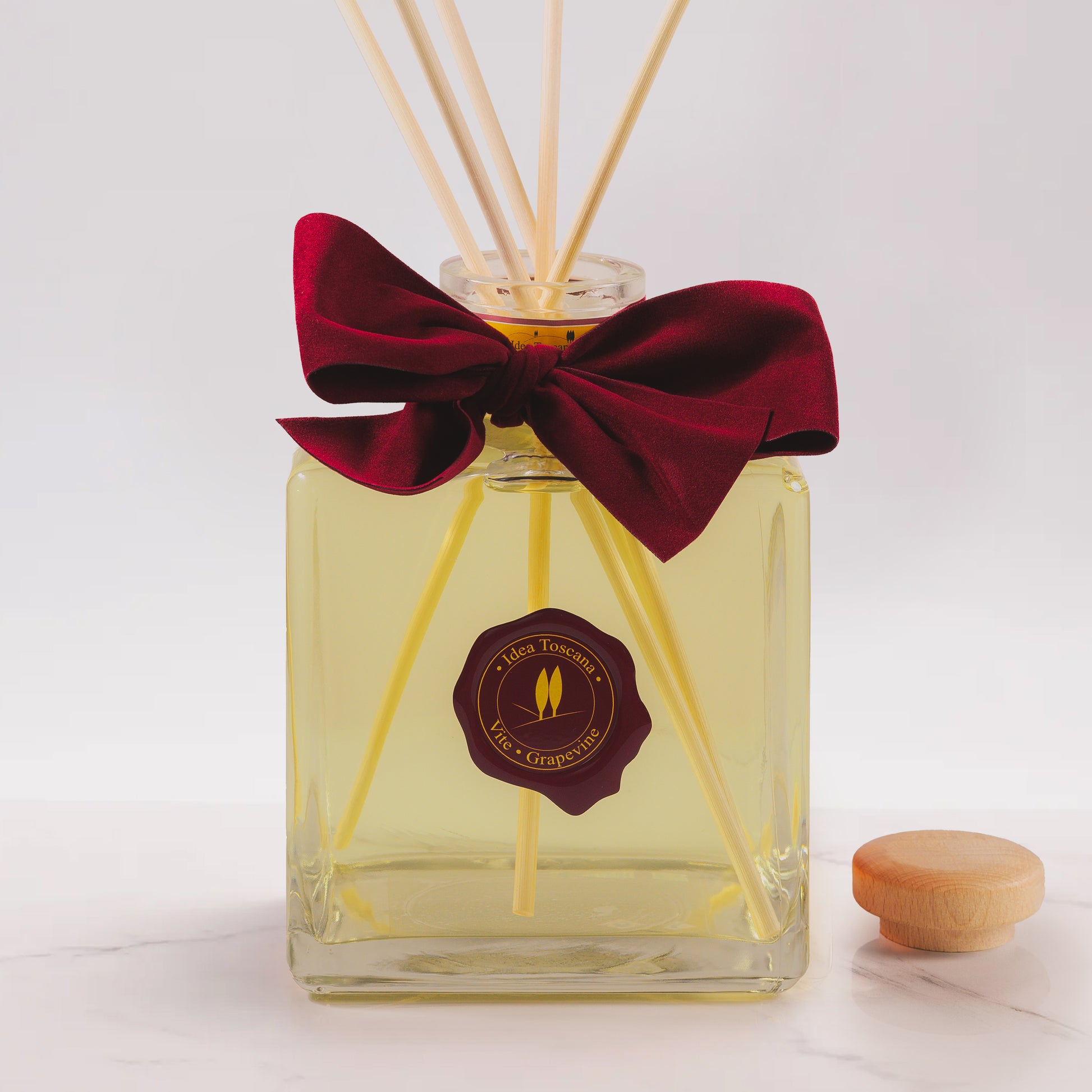 Olfactory Notes: The Grapevine room diffuser, with natural essential oils, makes spaces sweet and harmonious, creating a warm atmosphere of physical and emotional well-being.
