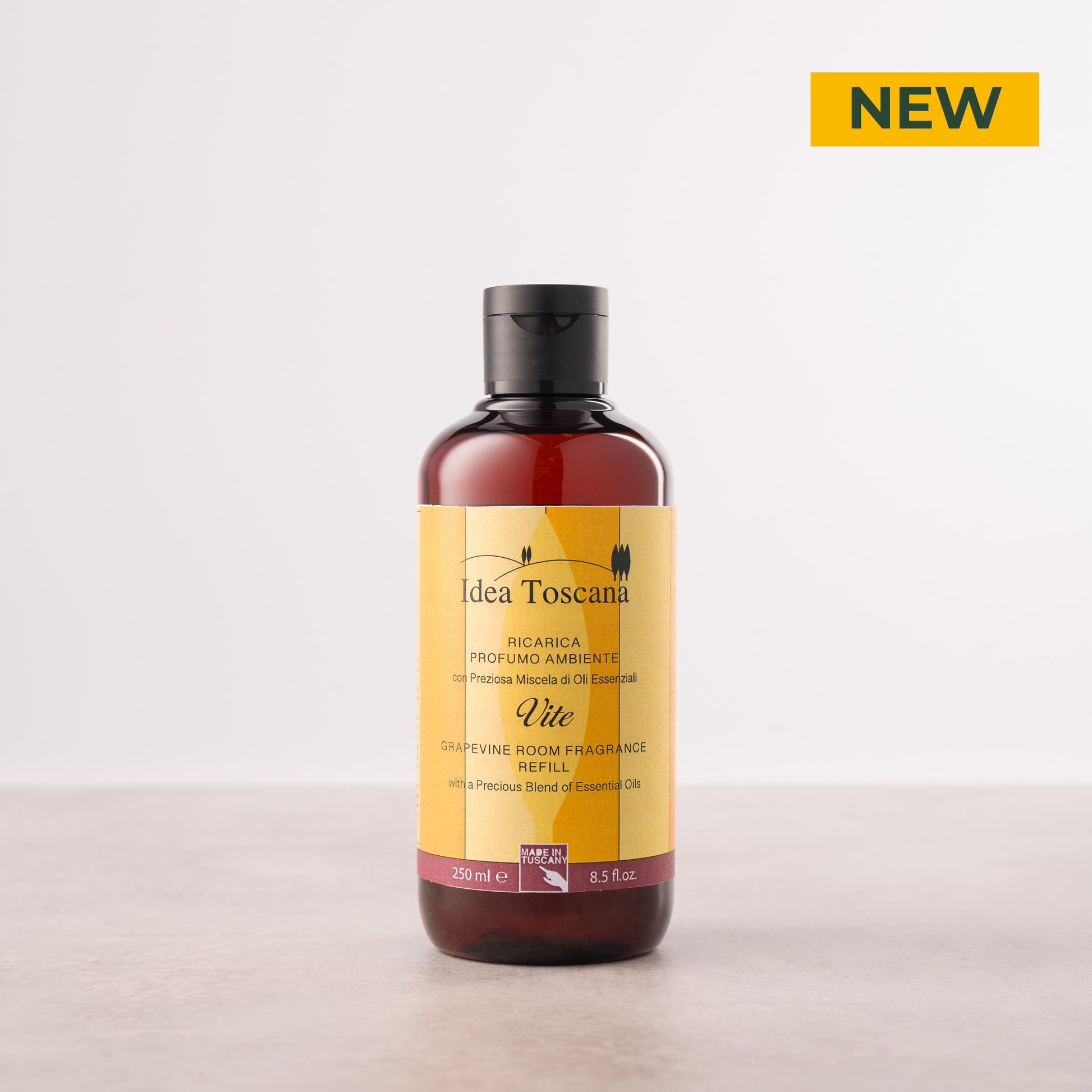 Extend the sensory experience of our Grapevine Room Fragrance with our exclusive 250ml or 500ml Refill. This fragrance concentrate allows you to refresh and renew your diffuser, bringing back the atmosphere of blossoming vineyards into your home or office.