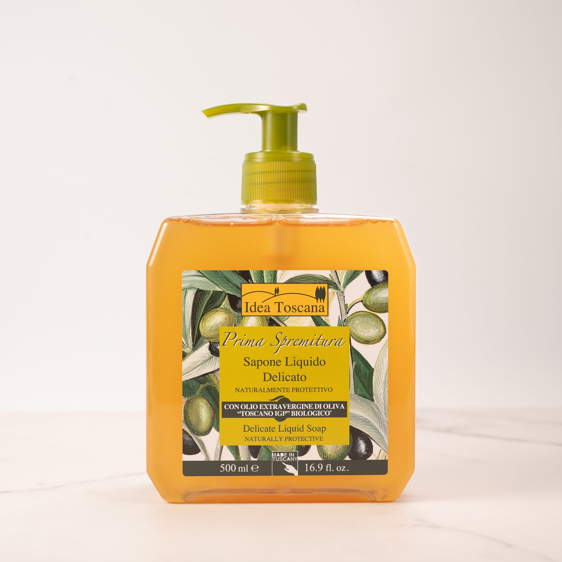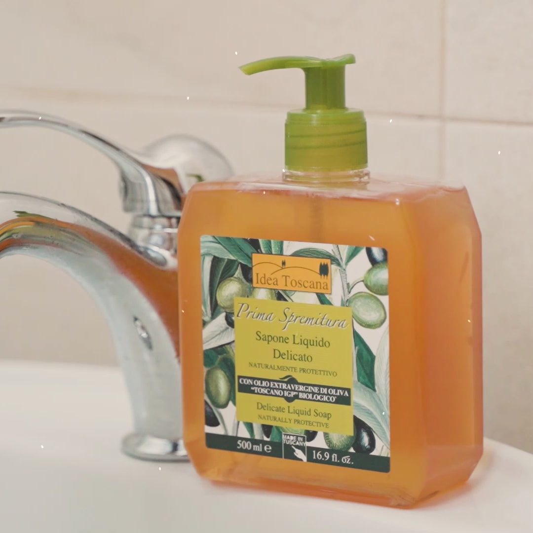 In the constant search for increasingly safe and quality formulas, our laboratory has developed the new formula of liquid soap. It is an oleic soap inspired by the Marseille tradition that cleanses the skin delicately, but deeply. Characterized by a low foaming and the typical cleansing sensation of soap, it is enriched with Organic Tuscan IGP EVO oil and a natural mix of essential oils. Syndet-free, it respects the skin leaving it soft and scented after each use.