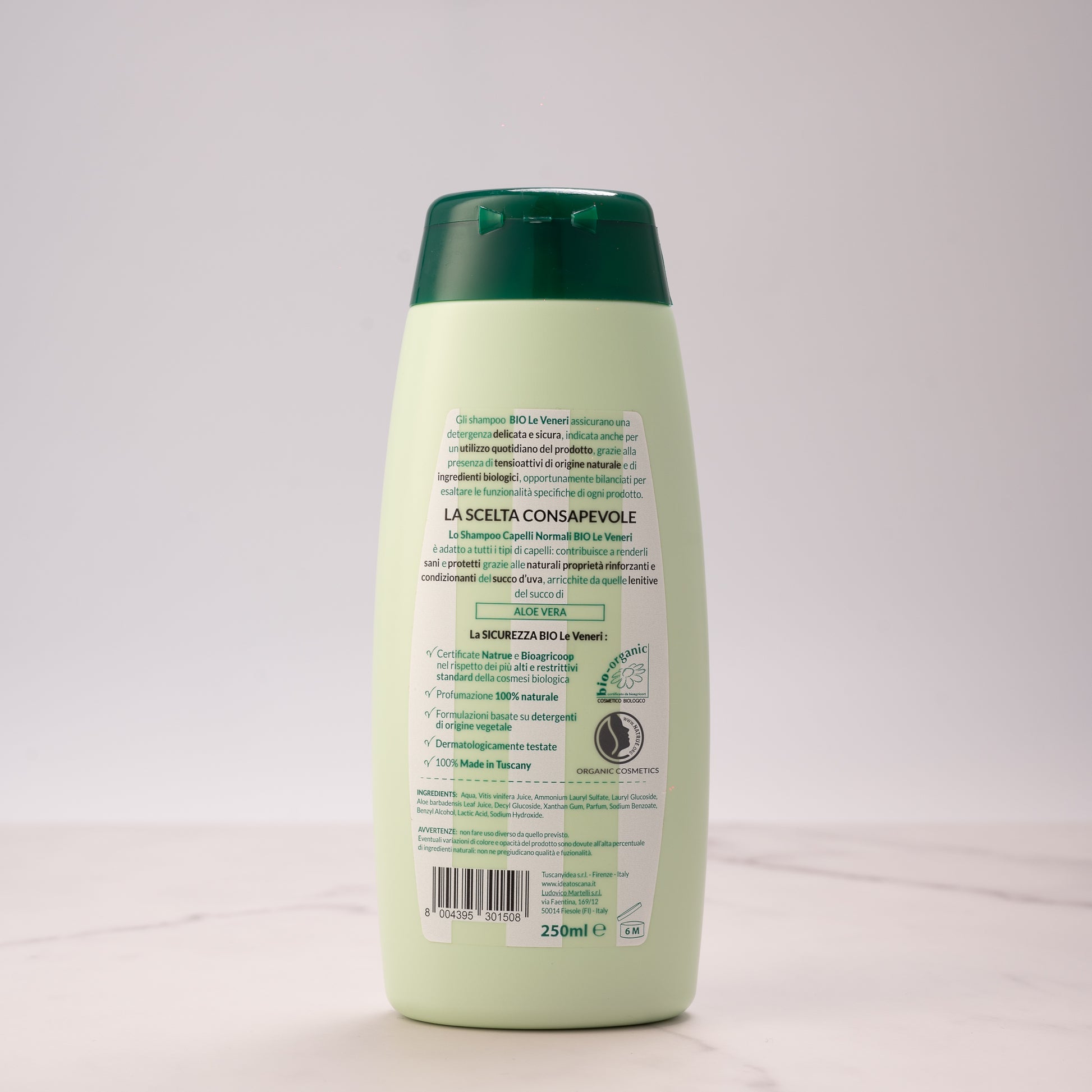 Le Veneri BIO Normal Hair Shampoo is suitable for all hair types: it helps make them healthy and protected thanks to the natural strengthening and conditioning properties of grape juice , enriched by the soothing properties of ALOE VERA juice.